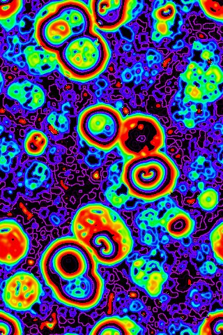 Increase / Decrease a "Parameter": In the settings you can choose different processes for generating patterns. Later posts will describe the settings interface in detail. Some processes have numbers you can change, which affect how the particles interact and evolve. These numbers are known as "parameters". Changing parameters will change the dynamics of the image; it can be interesting to change them while watching the pattern run.